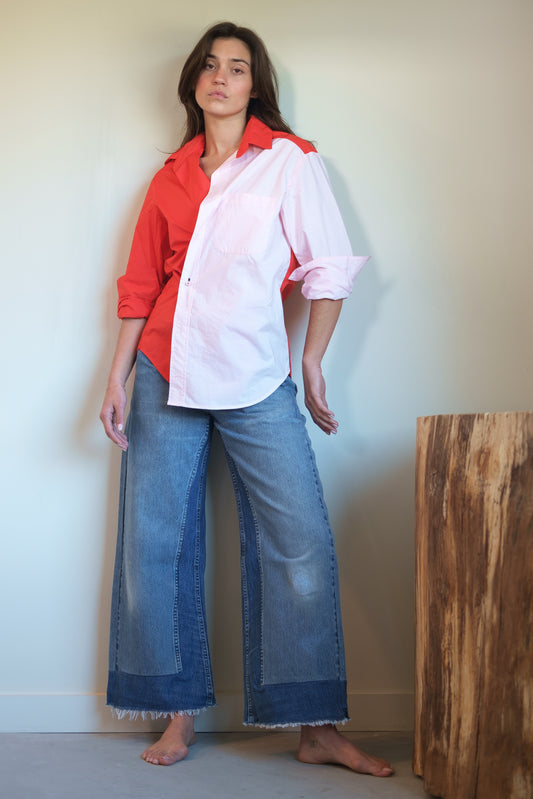Wear Cissa -The MEN'S Shirt, Paper Cotton Contrast in Gentleman's Pink/Cajun Colorblock