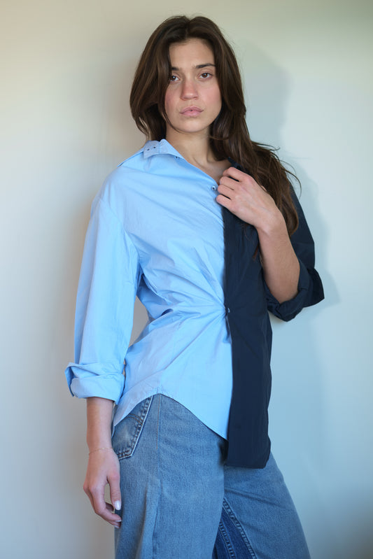 Wear Cissa -The MEN'S Shirt, Paper Cotton Contrast in Garcon/Navy Colorblock