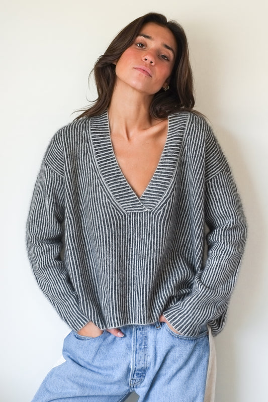 C.T.plage Silk Cashmere Double Face Pullover in Grey