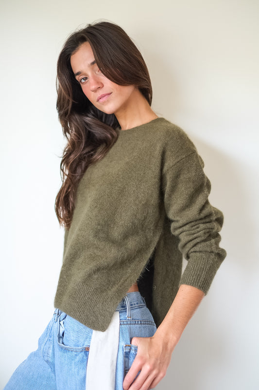 C.T.plage Raccoon Side Slit Pullover in Olive