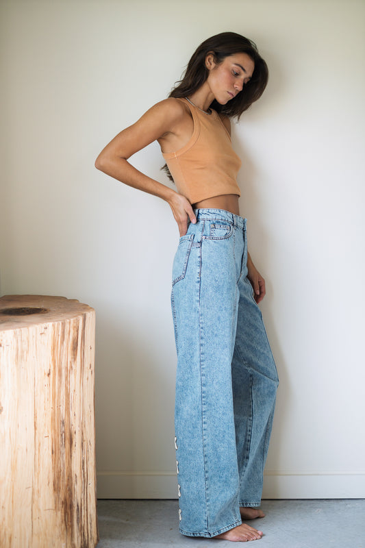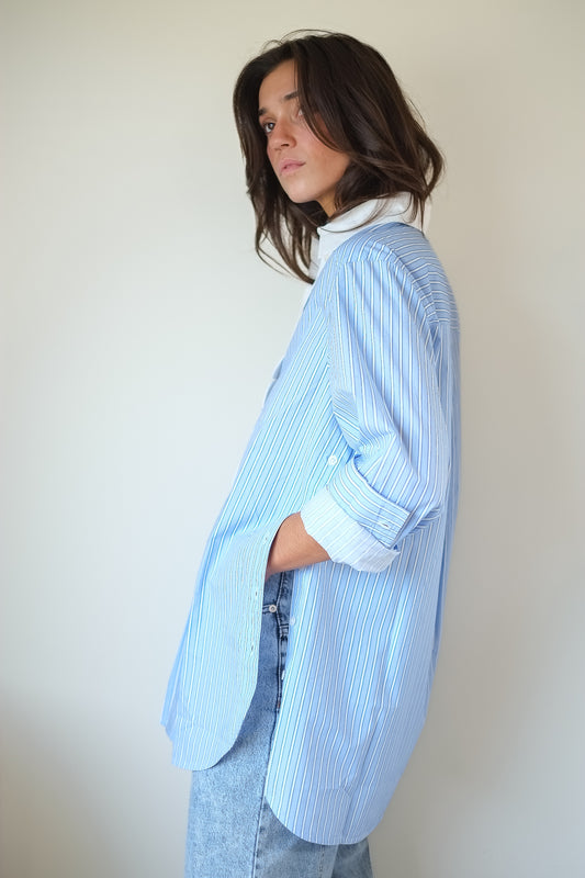 Stella Nova-Striped Shirt with Scallops in Creme Blue Stripes